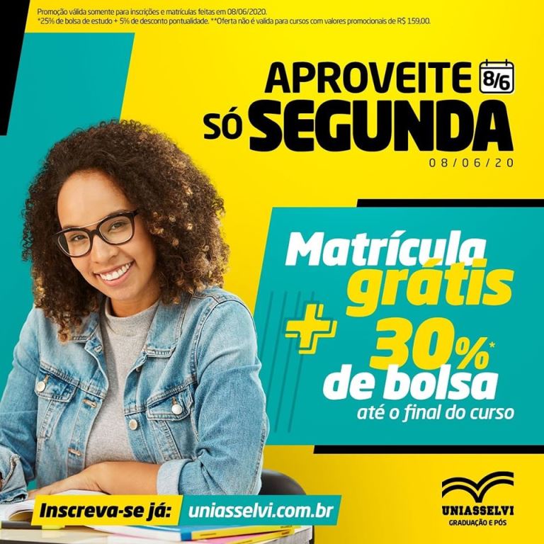 Não perca seu tempo, venha para *UNIASSELVI* .Faça sua matrícula: www.uniasselvi.com.brWhatsapp: (47)3301-6100