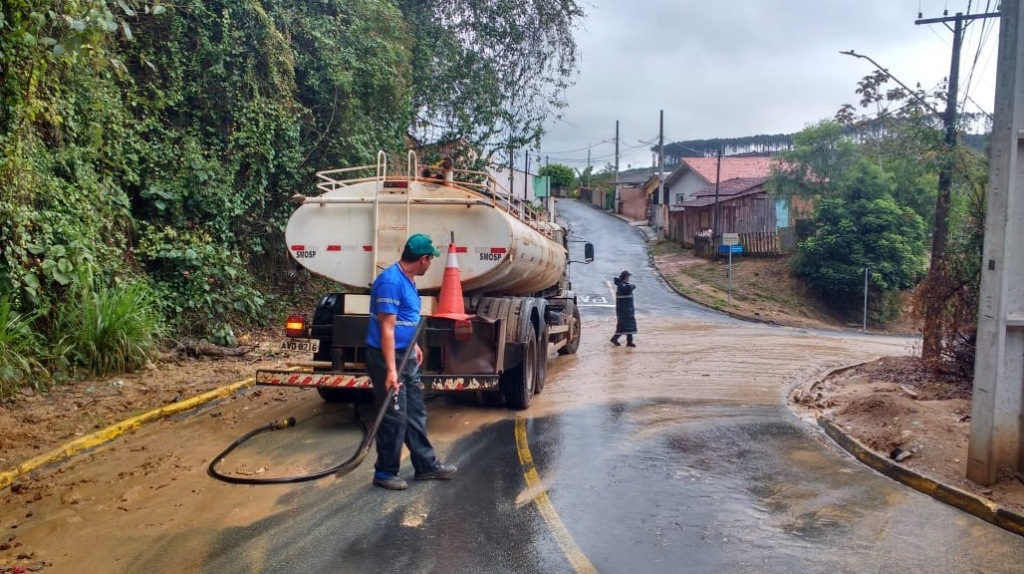 Rua Max Staudacher recebe limpeza da Prefeitura após ter deslizamentos
