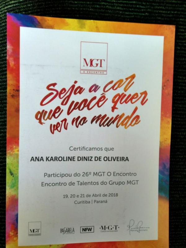 “Sou telêmacoborbense roxa”. Ela recebeu convite de cinco agências, mas isso demanda de investimentos, também de cunho pessoal: Cia de Talentos, Desir, ambas do Rio, e Lápis de Cor, Lumini Casting e Maria Mariá, de São Paulo. Desta vez, em Curitiba, também foi pelo Projeto Passarela, o MGT, que fora a 26ª edição, de 19 à 21 de abril, quando esteve na categoria 13 a 25 anos, Young.