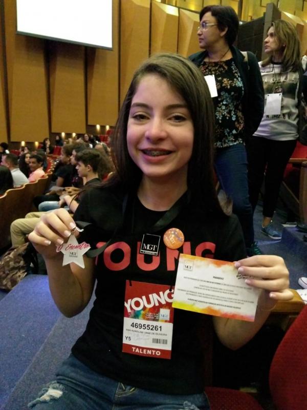 Para escolas com direito a bolsa, ela foi escolhida pela Dionny Alves e Hollyhood Film Academy, na categoria Teatro. Há a vertente, neste caso, para se tornar atriz: “Conversando com ela mesmo, a gente quer focar no teatro mesmo, inclusive tentando conciliar os dois teatros”, explicou Ana Maria, “porque ela fazendo teatro já dá um currículo para ela, e até televisão!”. Hoje, conforme informou-se a mãe, ao ter feito teatro, já se abrem as portas da modelo, para a Tv.