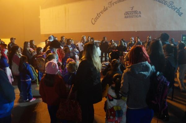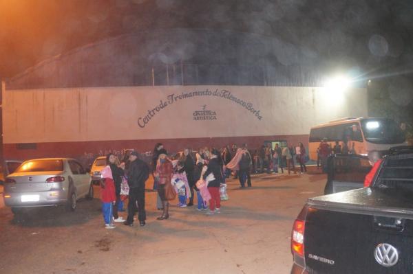2017-06-03 às 10:52:56) 60 atletas do Centro de Ginástica Artística de Telêmaco Borba (CGA), sob a coordenação da professora Sandra Cecilia Buttini, e acompanhada do professor Juliano Fulas, saíram às seis horas da manhã deste sábado rumo à capital do Estado, onde no Ginásio Duque de Caxias participam no dia de hoje do Campeonato de Estreantes da Federação Paranaense de Ginástica Artística.