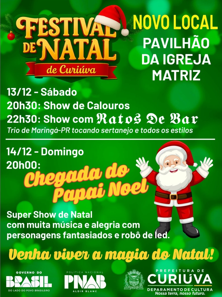Participe do Festival de Natal de Curiúva, neste sábado e domingo, no Salão da Matriz. (PMC)